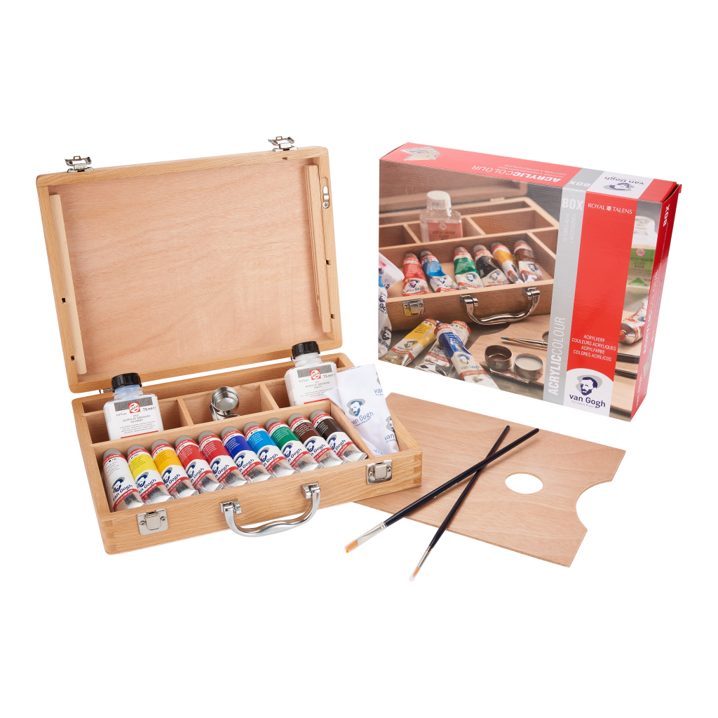 Van Gogh Akrylfärger trälåda, 10 färger i 40 ml tuber tillbehör