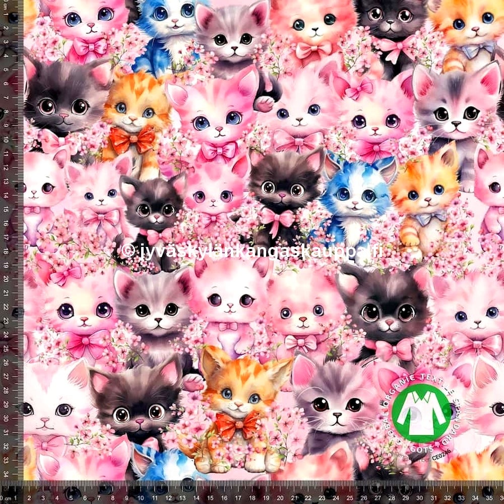 Digiprintti trikoo Cute Kitten (n. 1,1m valmispala)